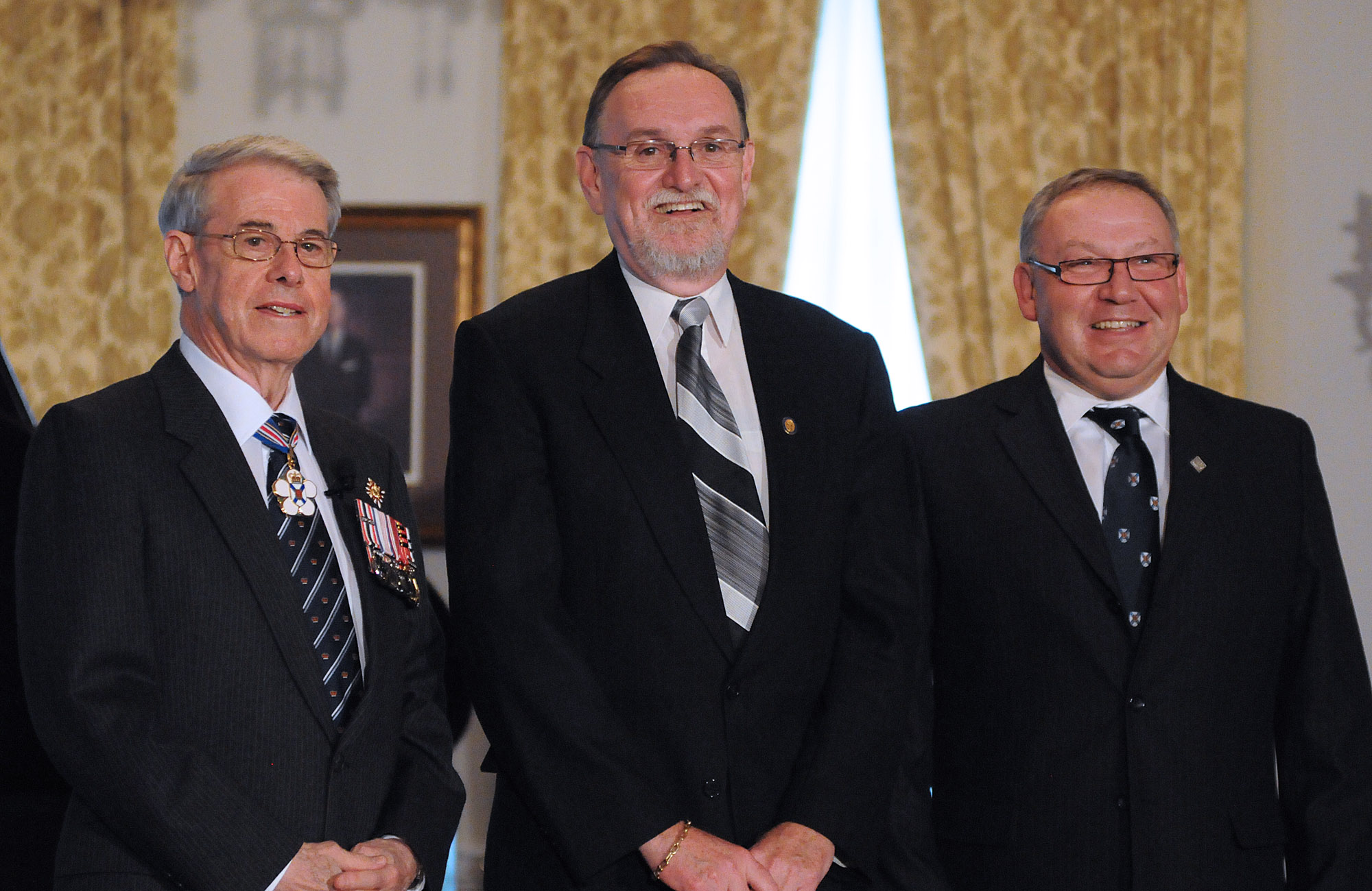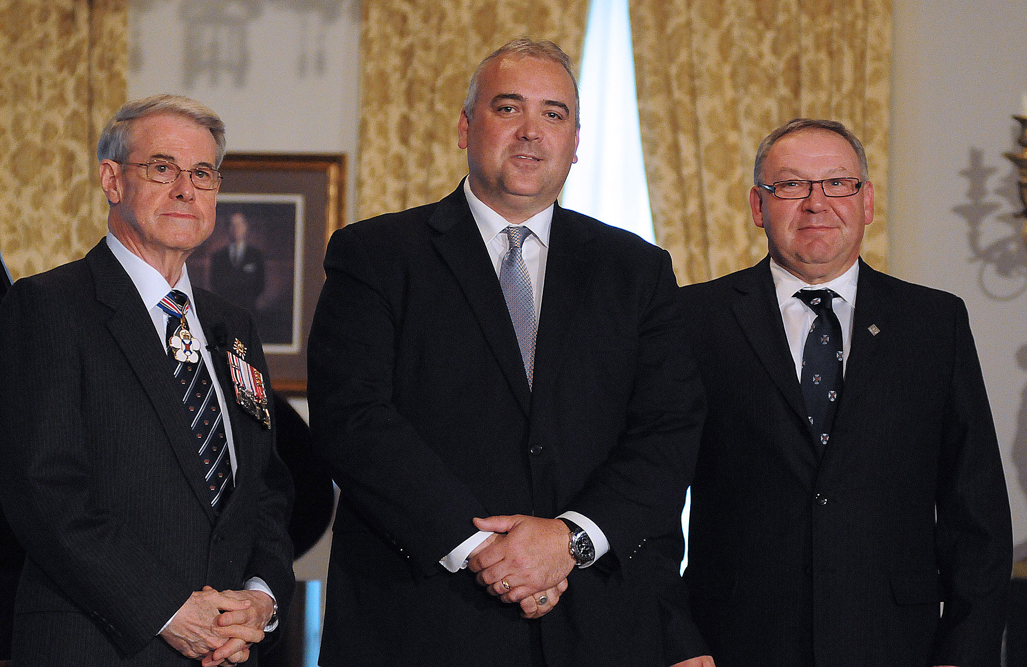 New Minister of Transportation and Infrastructure Renewal Maurice Smith stands with Premier Darrell Dexter and Lt.-Gov. John James Grant.