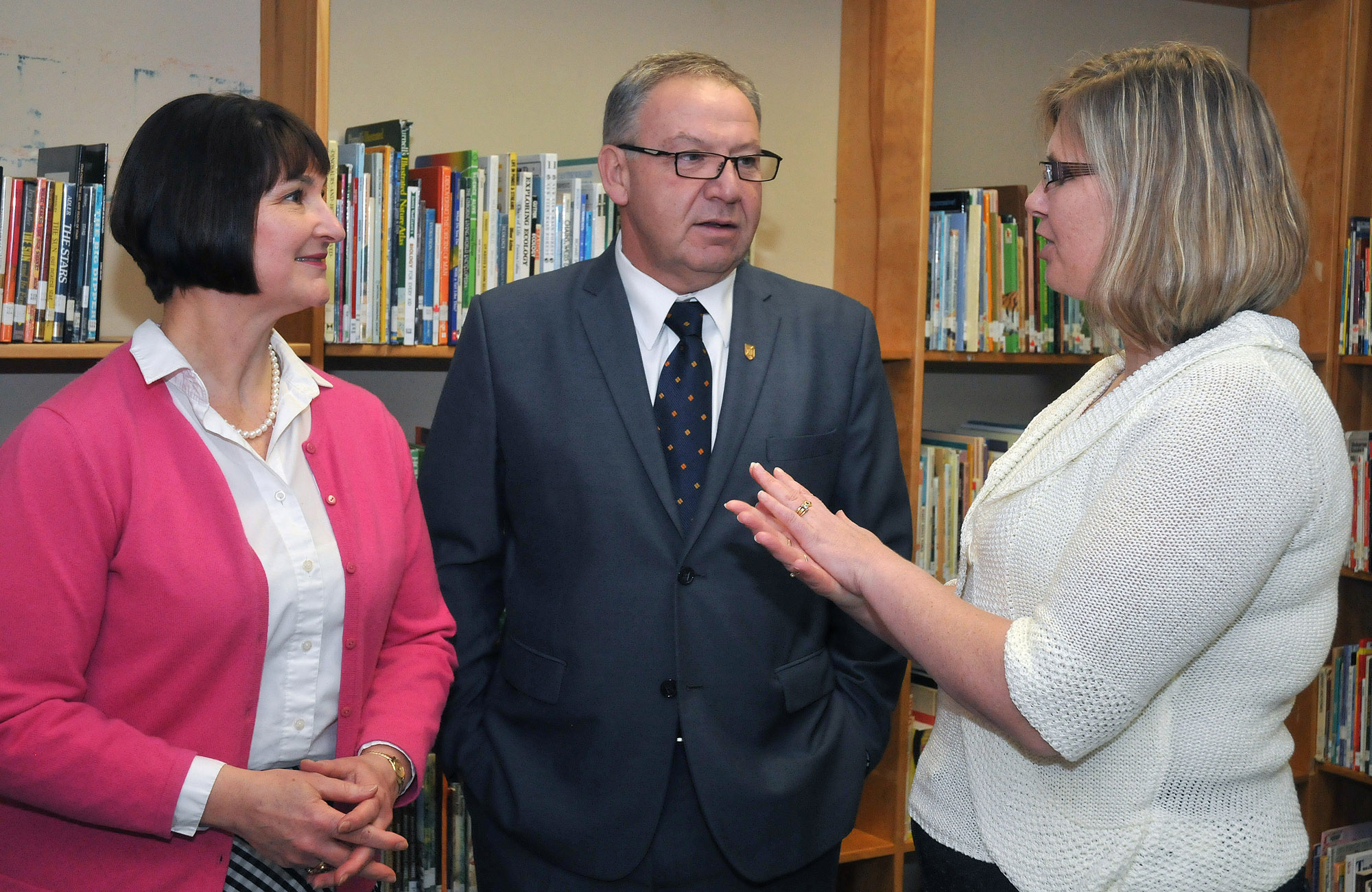 Parent Christine Lane talks with Premier Darrell Dexter and Education and Early Childhood Development Minister Ramona Jennex about how Early Years will help make the transition to school smoother for children, families, and the schools.