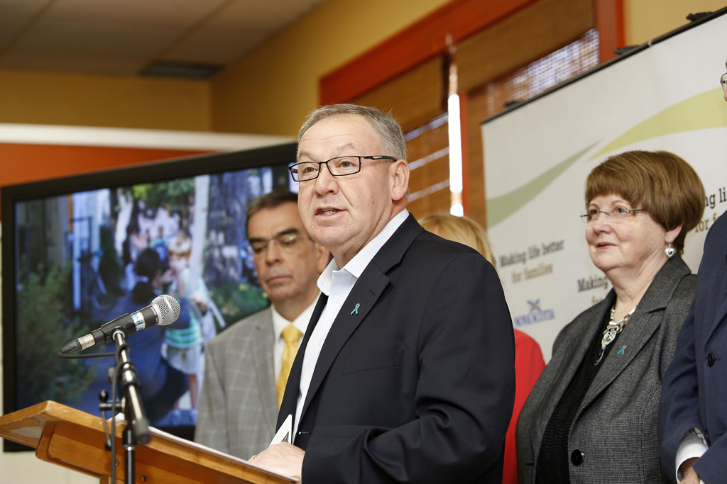 Premier Darrell Dexter speaks at the strategy announcement during a visit to the North Woodside Community Centre in Dartmouth.