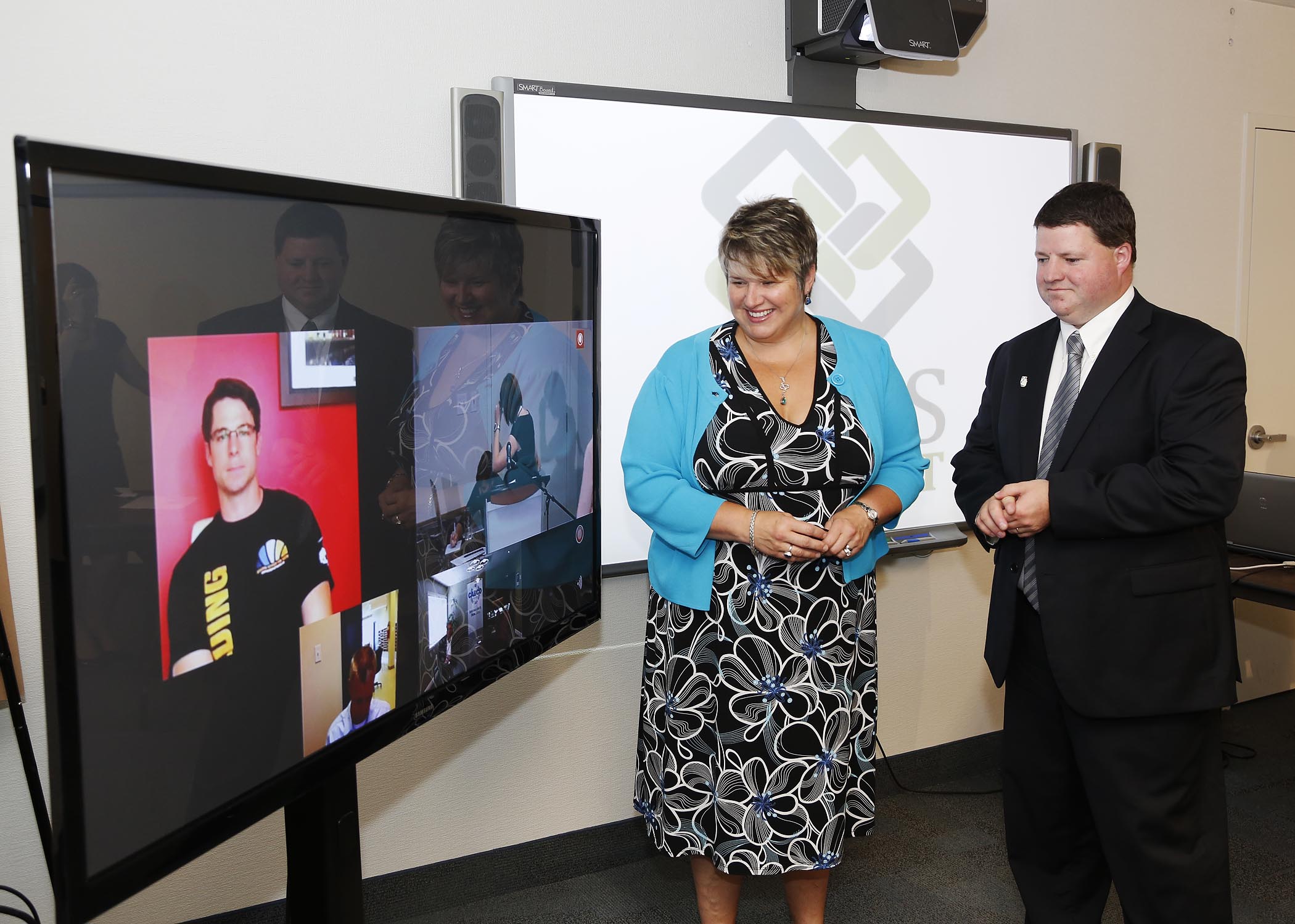 The new high-definition video system, visible in the background, will provide better access to training and help workers maintain and develop skills for good jobs.