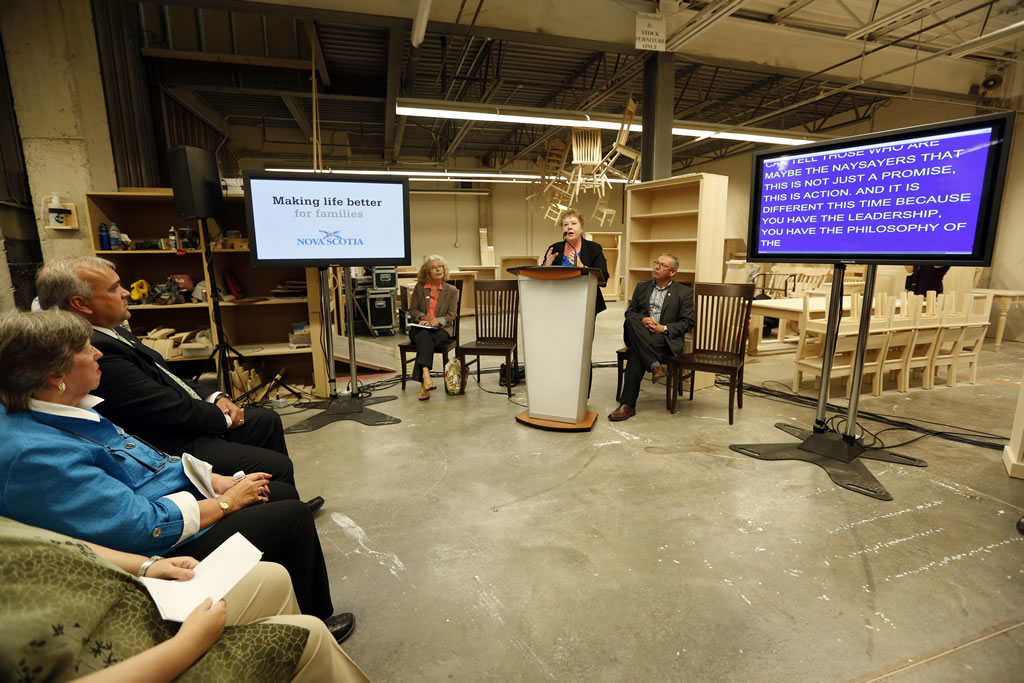Community Services Minister Denise Peterson-Rafuse speaks at the announcement.