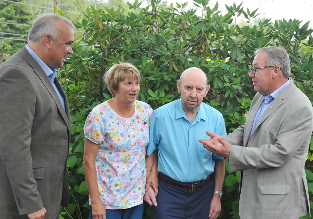Health and Wellness Minister David Wilson, Debbie Gavas-Spence, a licensed practical nurse at The Birches, her father Doug Westhauser; who is now a resident there, and Premier Darrell Dexter.