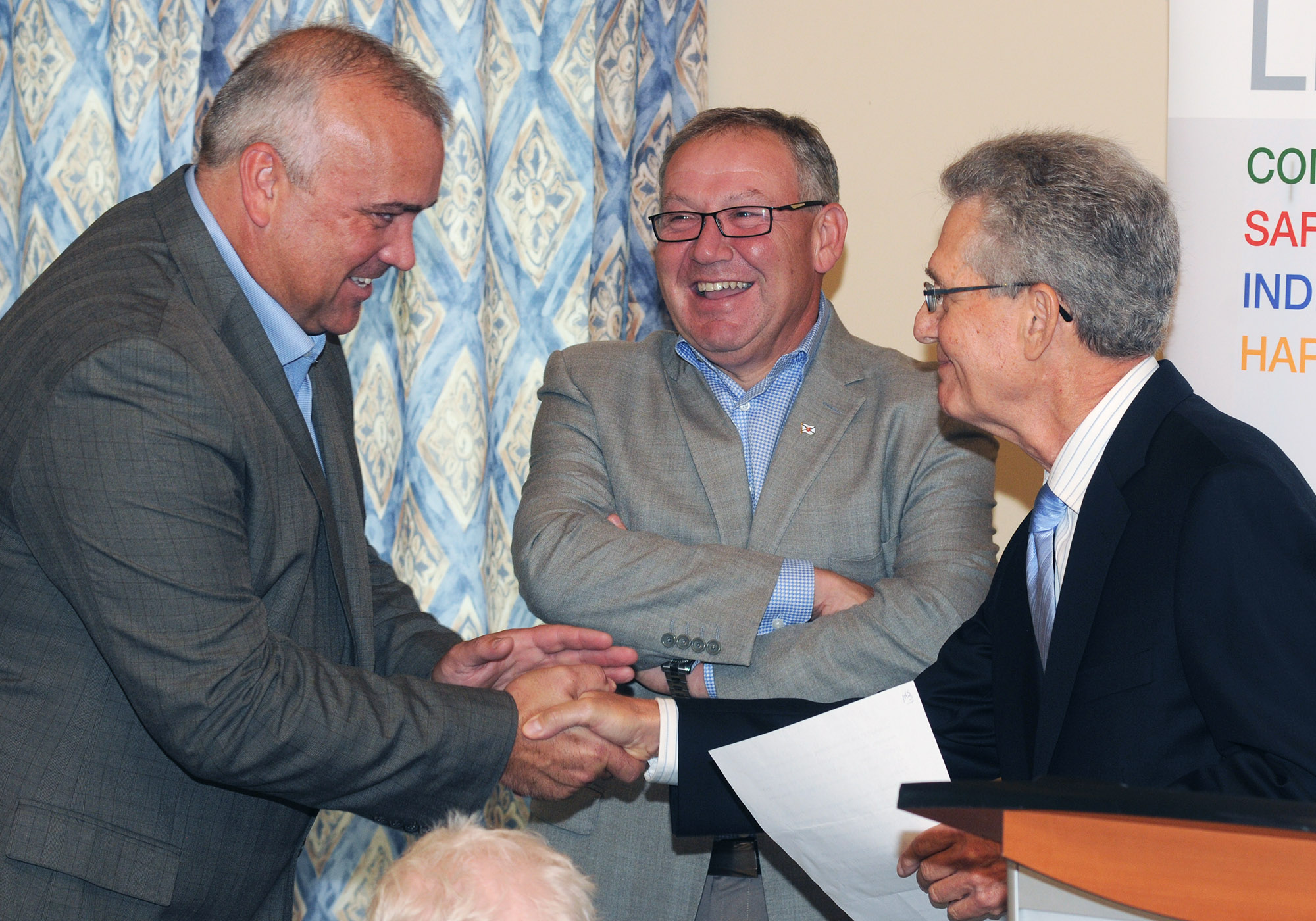 Premier Darrell Dexter and Health and Wellness Minister David Wilson applaud at the announcement of Living Better: Nova Scotia's Plan for Seniors' Care.