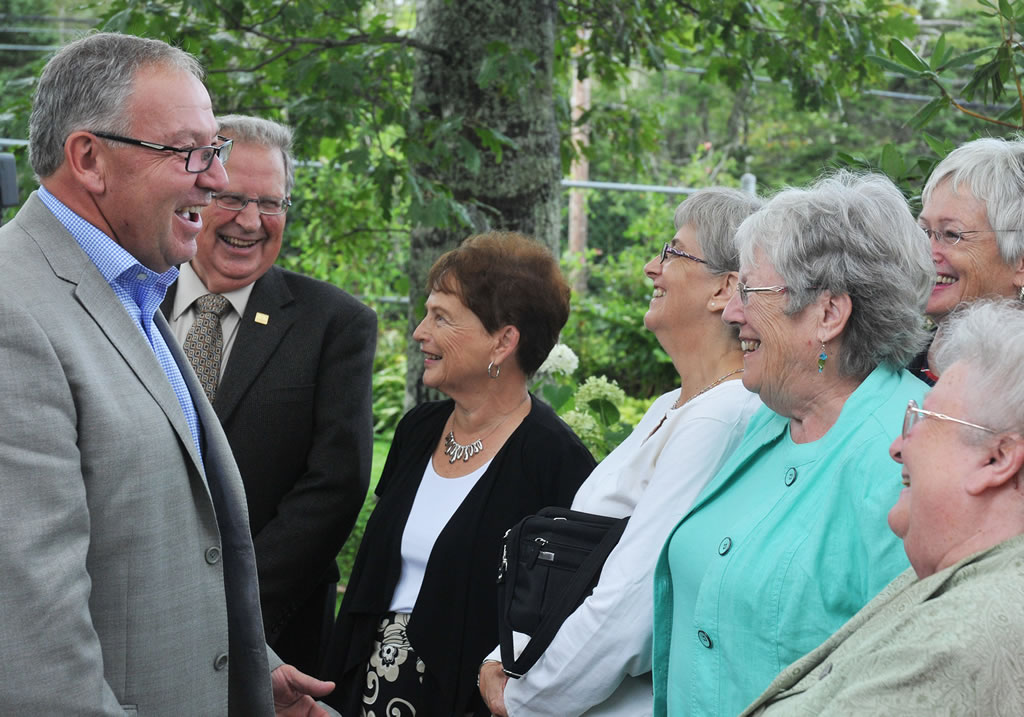 Premier Darrell Dexter chats with people on hand for the announcement Living Better: Nova Scotia's Plan for Seniors' Care.