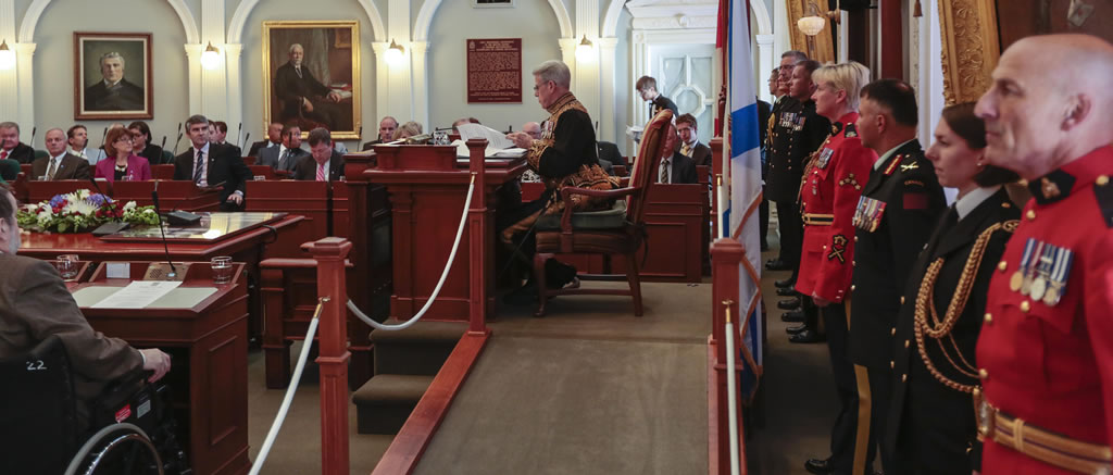 Lt.-Gov. J.J. Grant reads the speech from the throne at the opening of the second session of the 62nd General Assembly of Nova Scotia